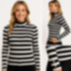 Megi Collection bluzka półgolf bawełna prążek biało-czarny LUANA beż S/M , l/XL